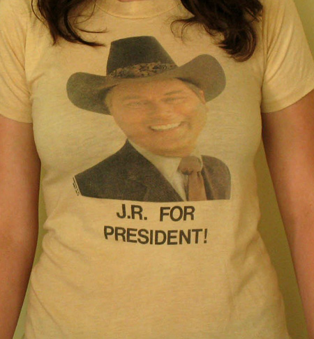 Awesome designs….I love the “J.R. for President” shirt…now that takes me back